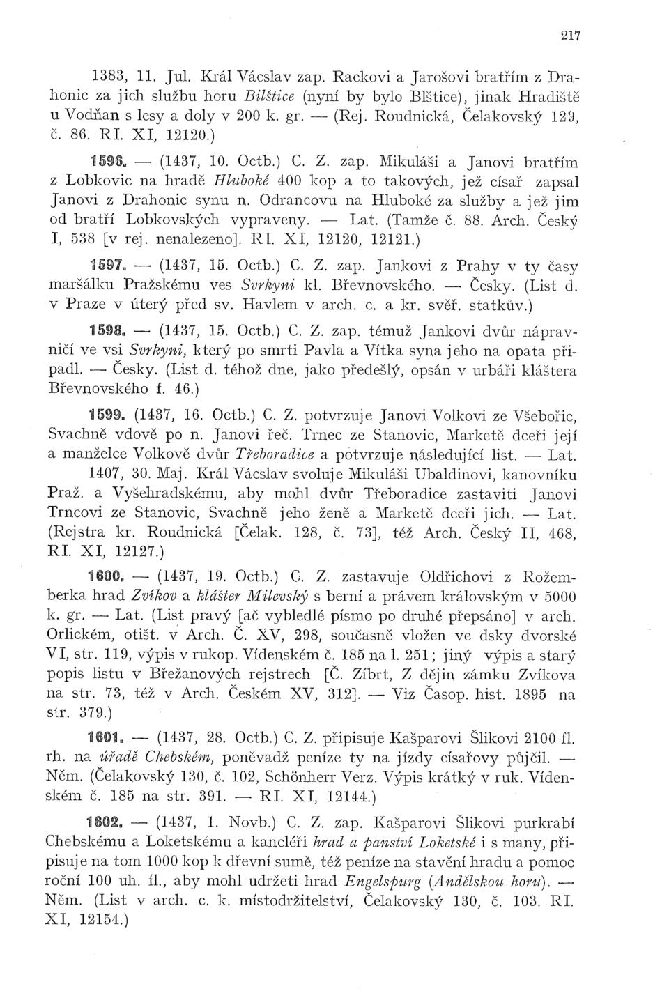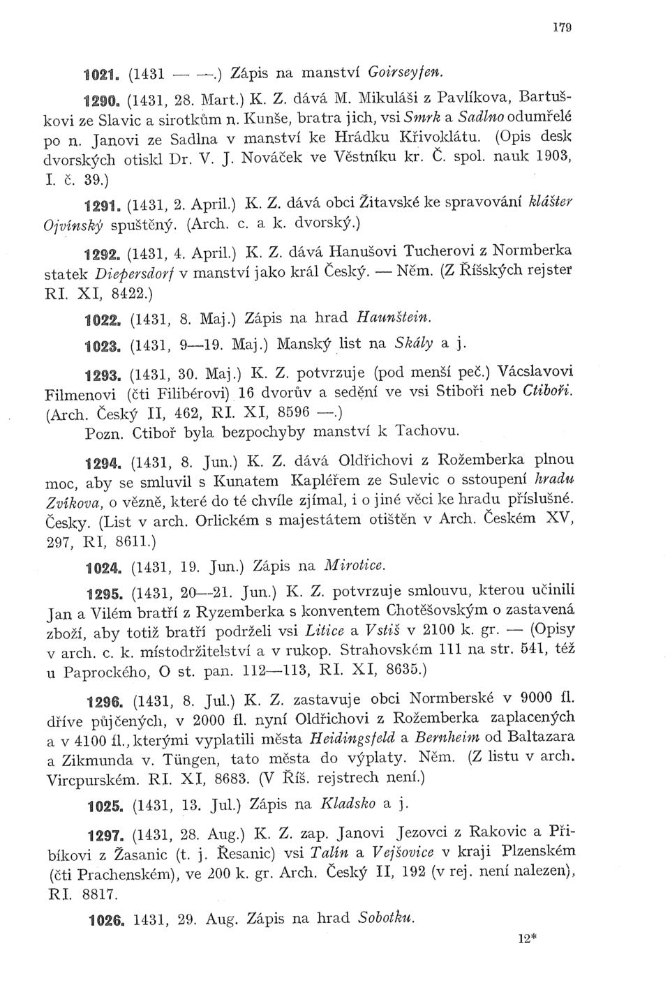 1895 na str. 376. 1184. (1421, 31. Decb.) List záškodní