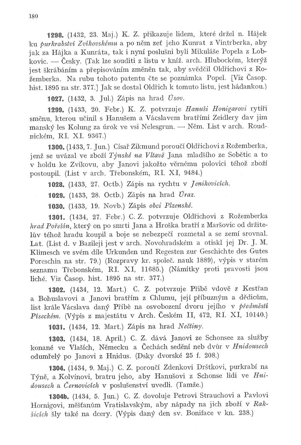 Zbytky register králův Římských a Českých 1361–1480 (Sedláček)