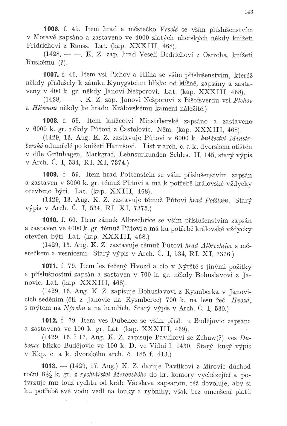 Něm. (kap. XXXIII, 468). (1429, 13. Aug. K. Z. zastavuje