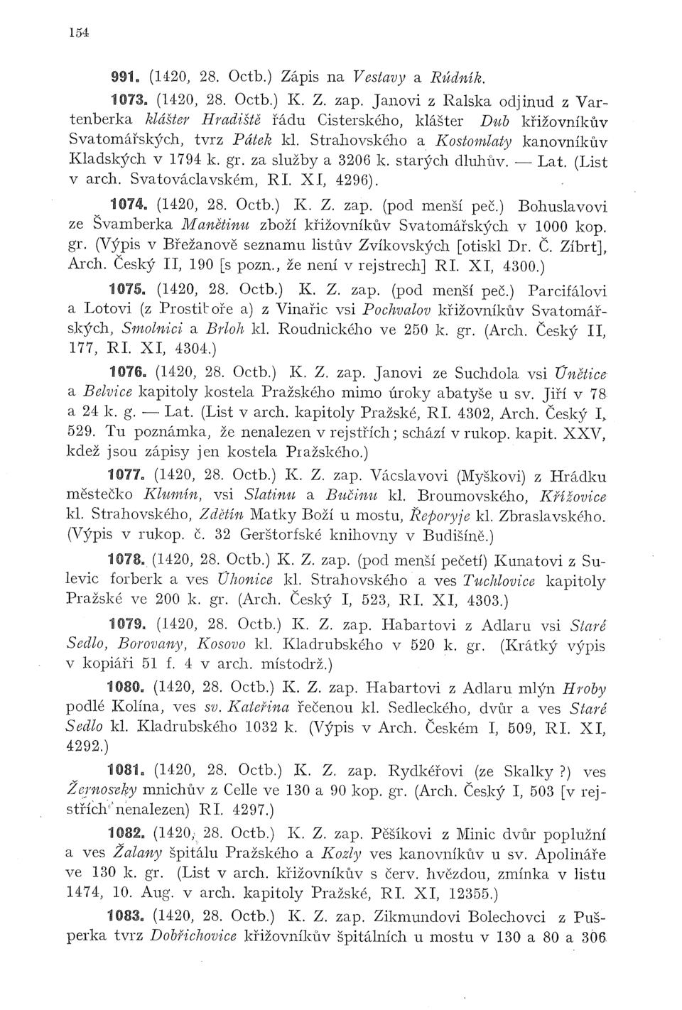 kl. Kladrubského 1032 k. (Výpis v Arch. Českém I, 509,