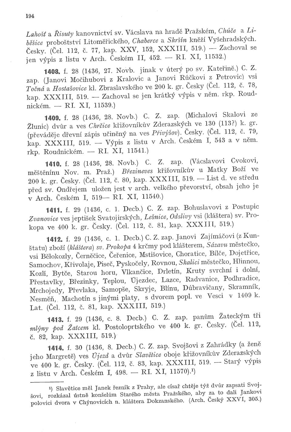na ves Krč. (Jest toliko zmínka v zápise Martinově [1446,