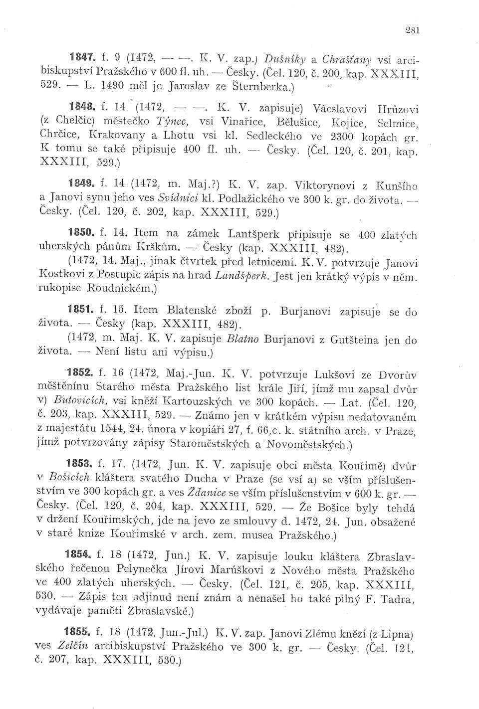 Zbytky register králův Římských a Českých 1361–1480 (Sedláček)
