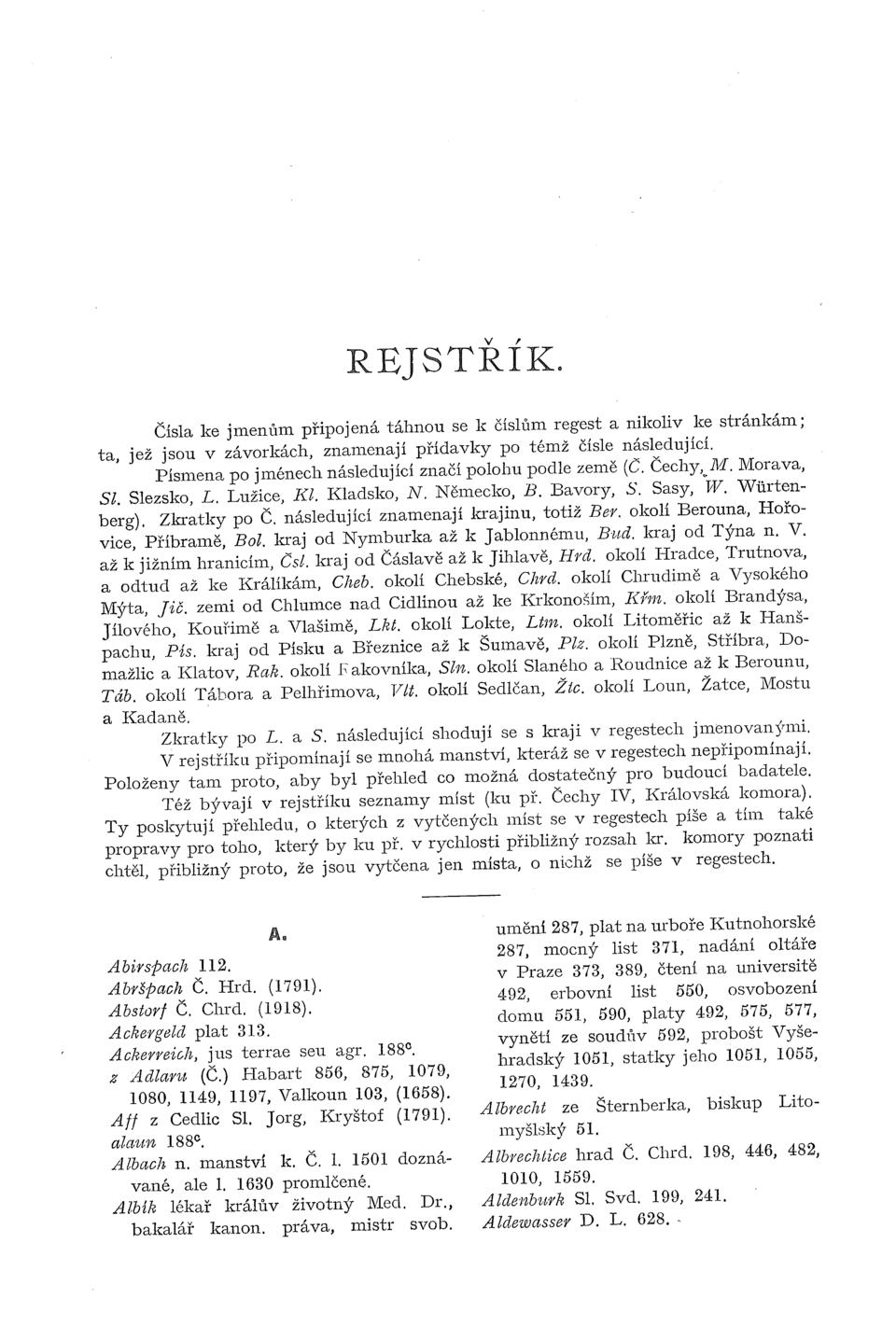 Zbytky register králův Římských a Českých 1361–1480 (Sedláček)