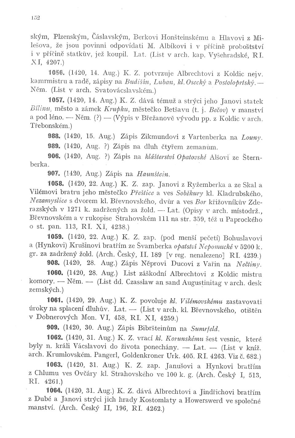 na Lito- měřice atd. 891. (1422, 30. Novb.) Zápis Jindřichovi