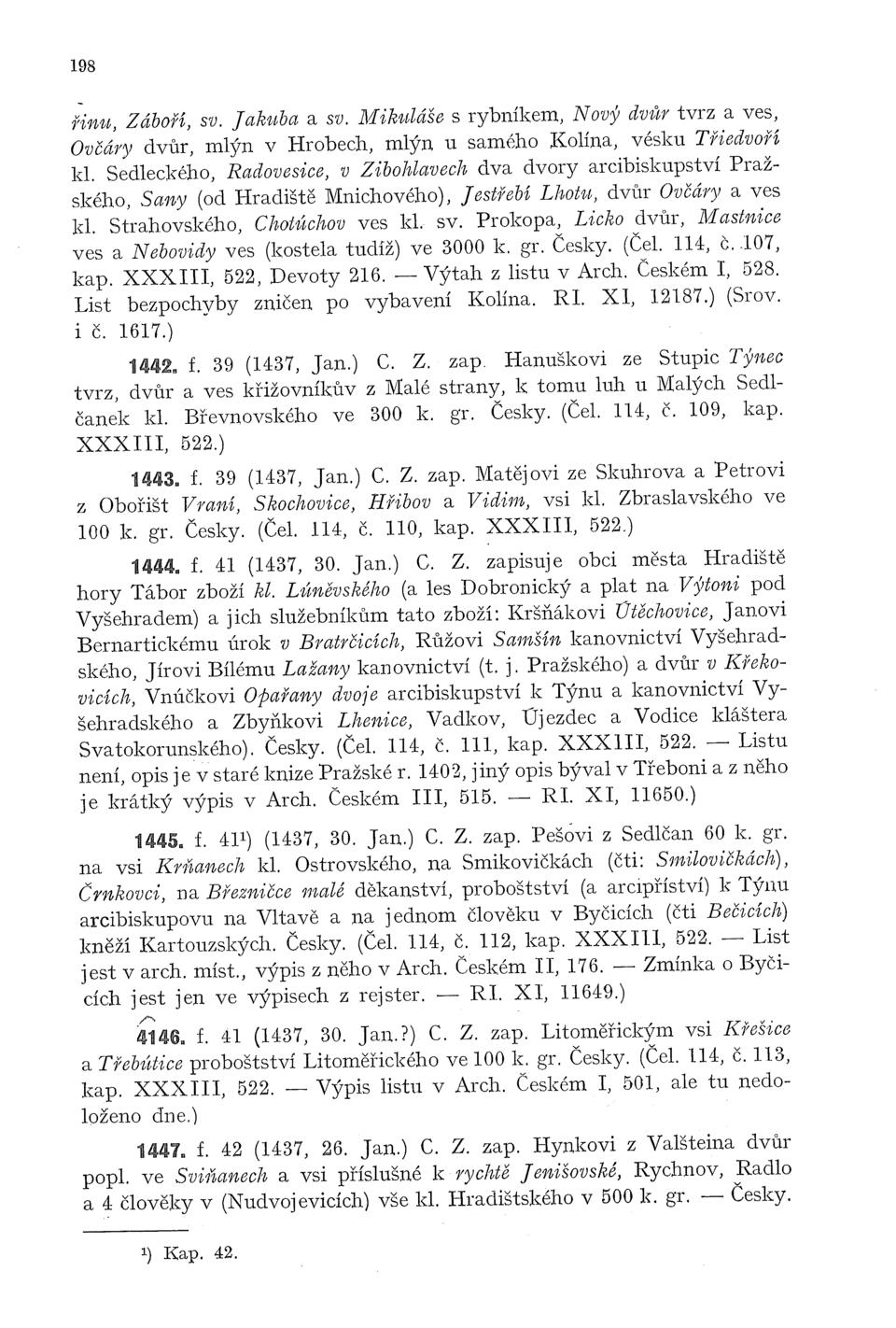 1444. f. 41 (1437, 30. Jan.) C. Z. zapisuje obci