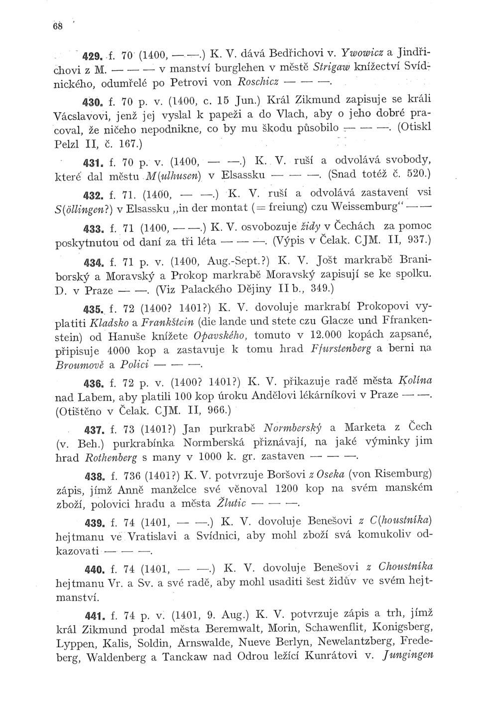 Zbytky register králův Římských a Českých 1361–1480 (Sedláček)