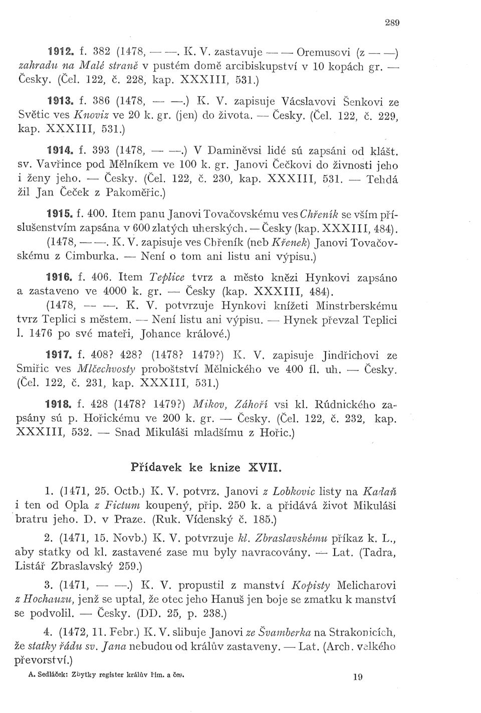 Zbytky register králův Římských a Českých 1361–1480 (Sedláček)