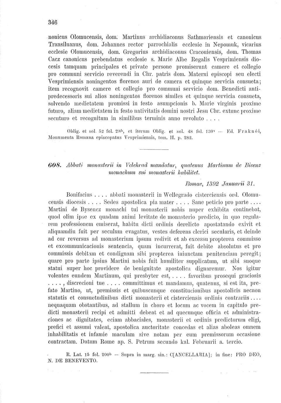episcopi Litomyšlensis. Romae, 1389 Aprilis 28. Anno [nativitatis domini nostri