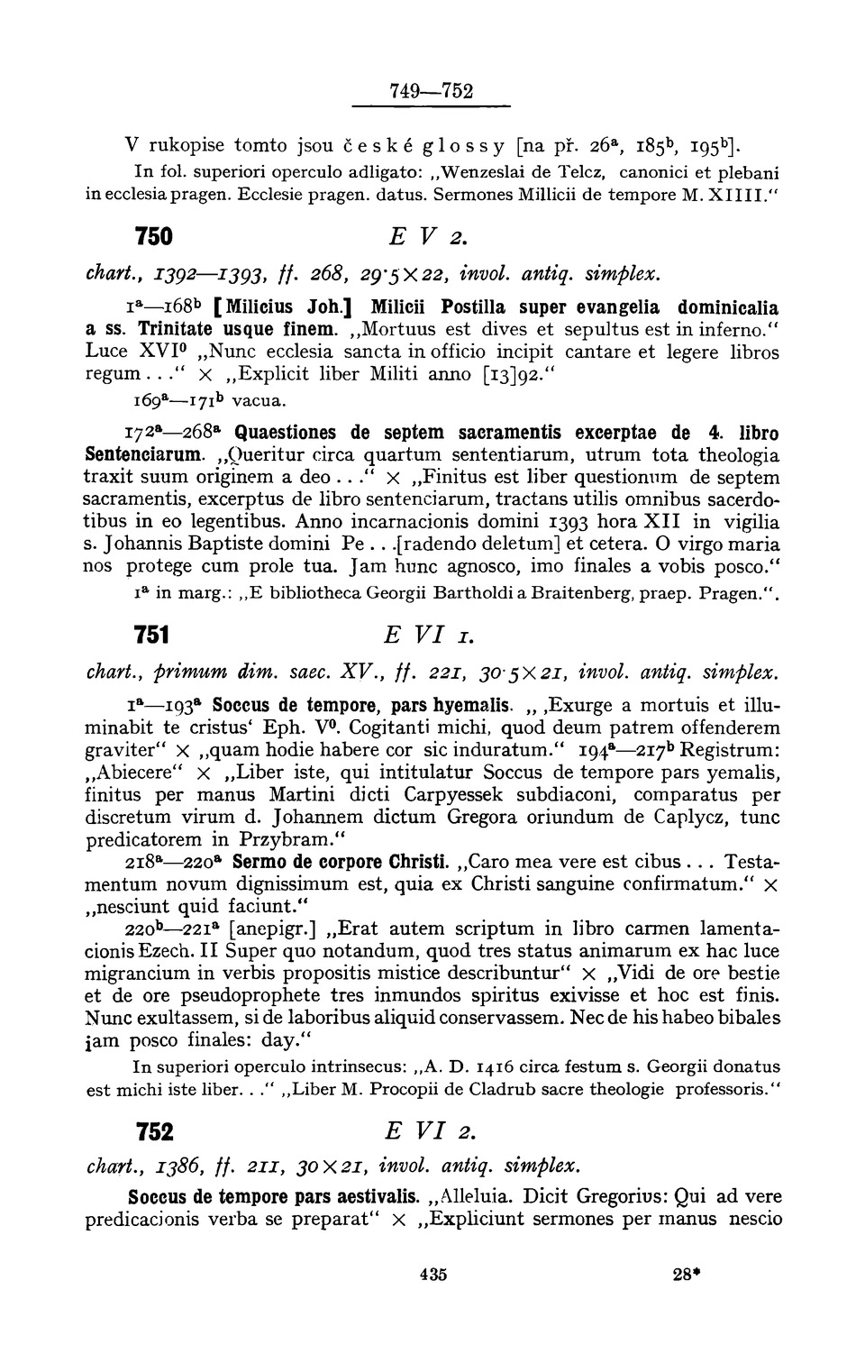 Cladrub sacre theologie professoris. E VI 2. 752 chart., 1386,