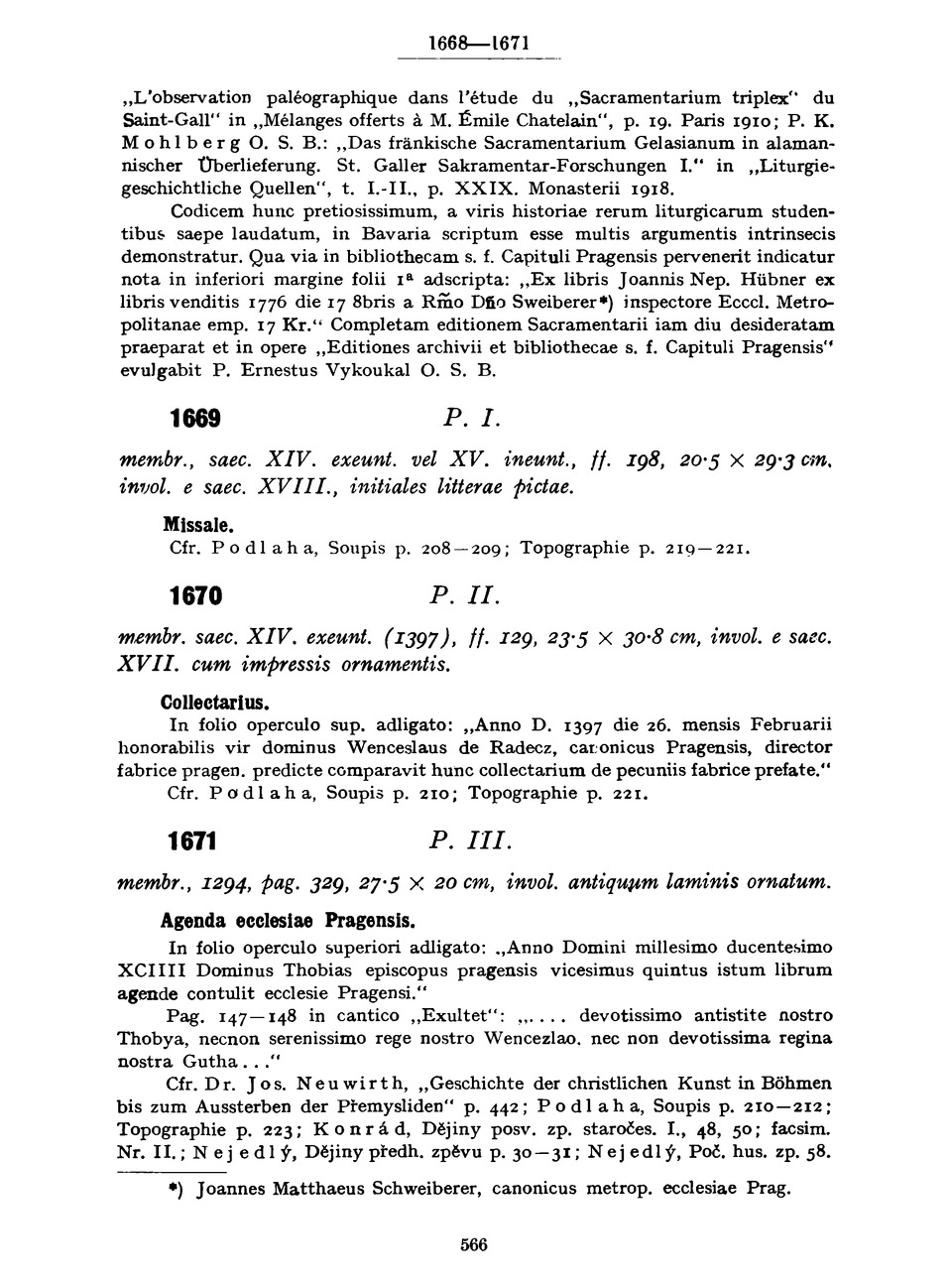 Soupis p. 210; Topographie p. 221. 1671 P. III. membr.,