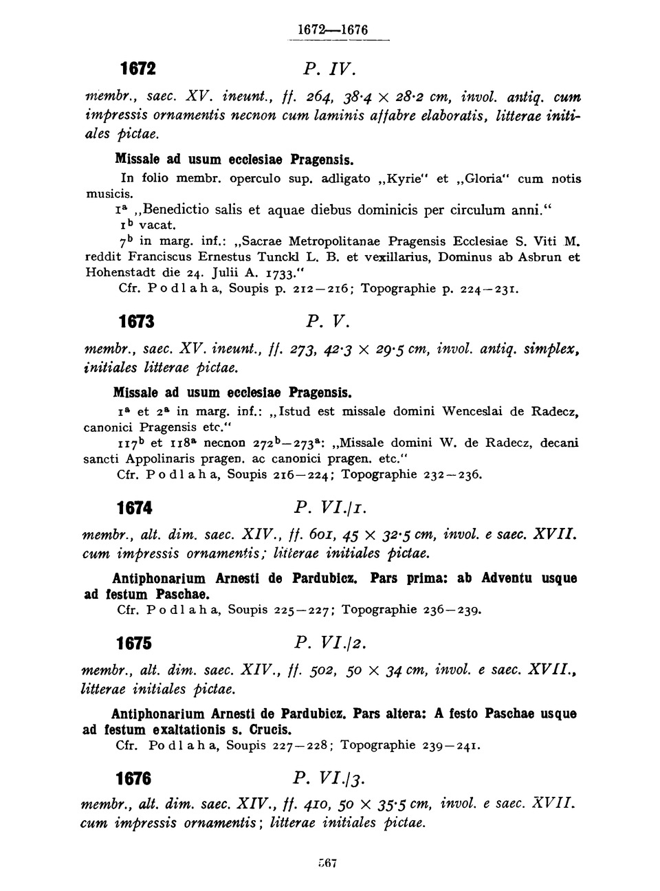 Soupis p. 212—216; Topographie p. 224—231. 1673 P. V. membr.,