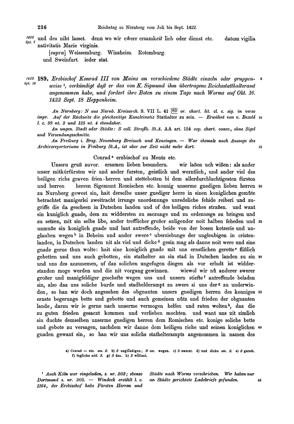 Rotemburg. und Sweinfurt. ieder stat. 236 datum vigilia 1422 189.