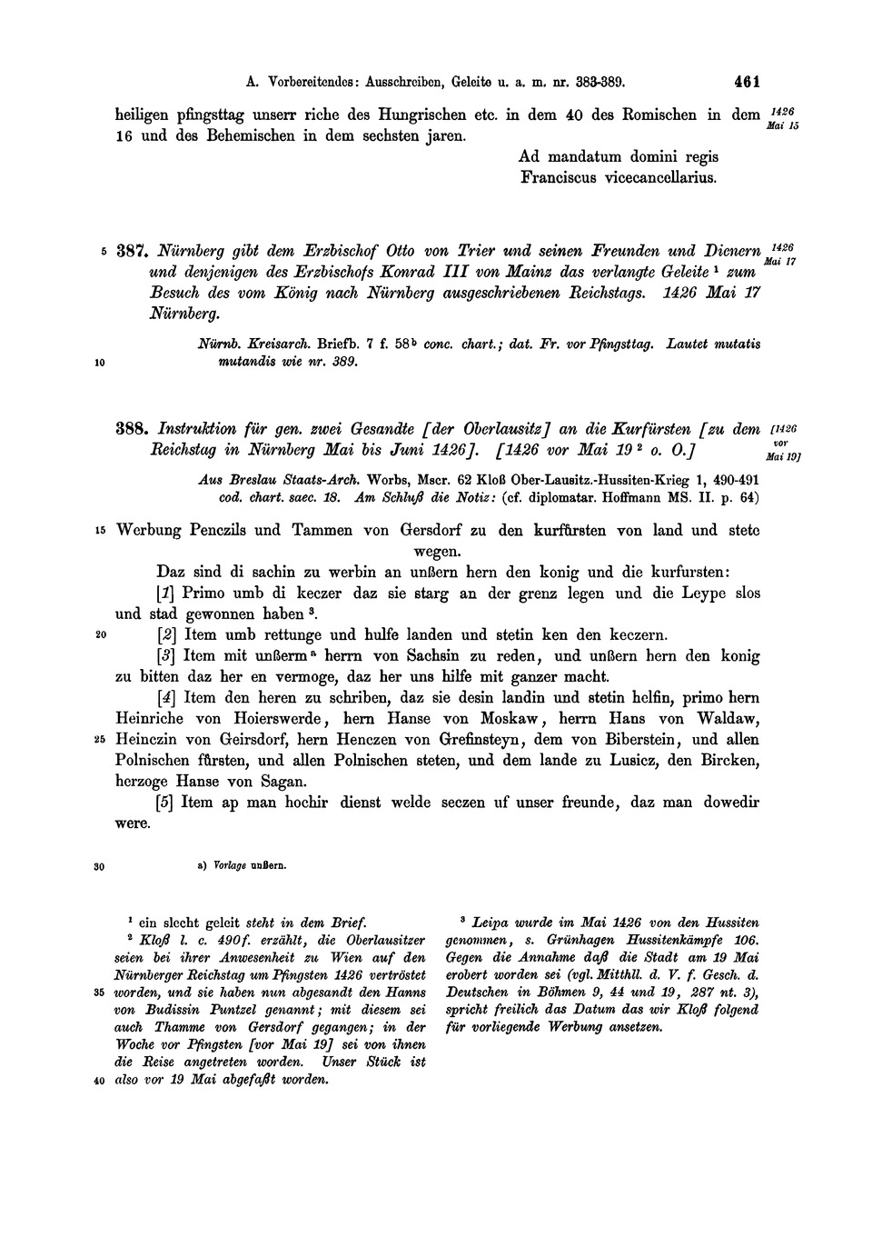 auf 30 Nov. 1423 nr. 283-290. 331 288. Nürnberg an