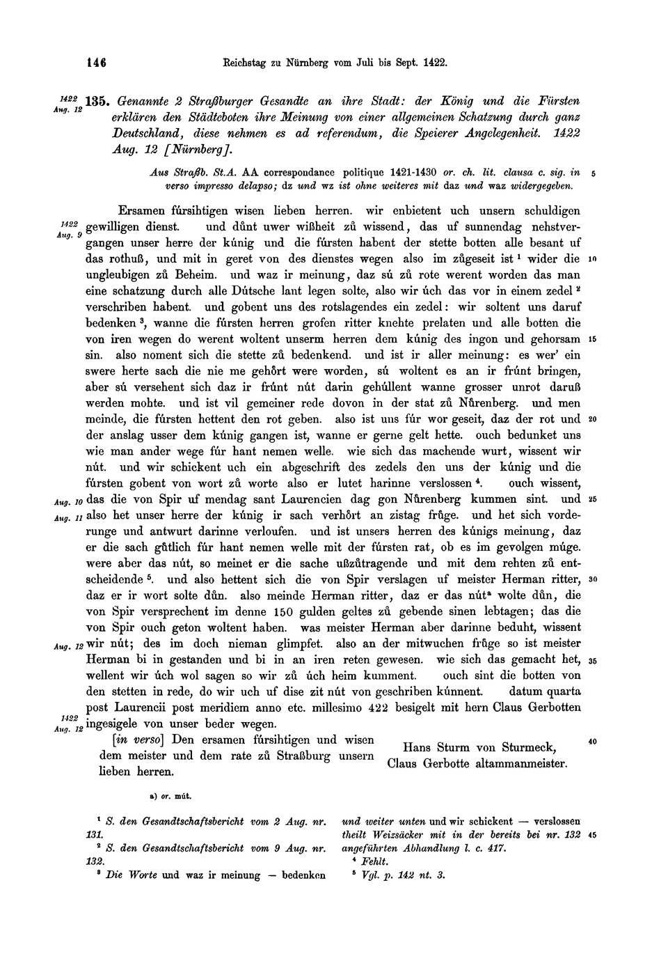 ad referendum, die Speierer Angelegenheit. 1422 Aug. 12 [Nürnberg]. Aus
