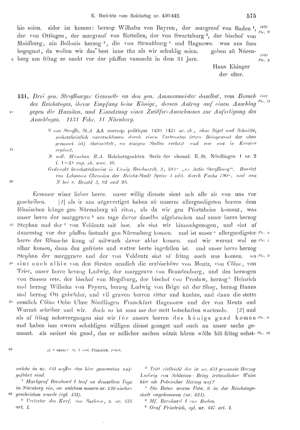 angekommen (nr. 431). b Mf. Bernhard I ron Baden. 6
