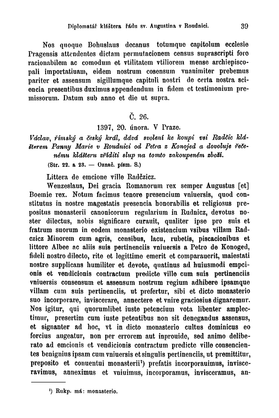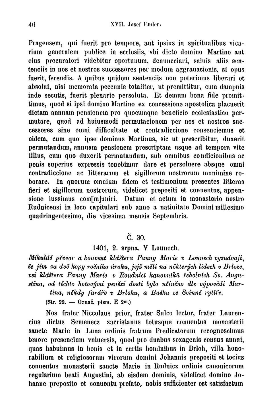 v Roudnici. (Str. 13. — Ozn. písm. J.) Super empcione