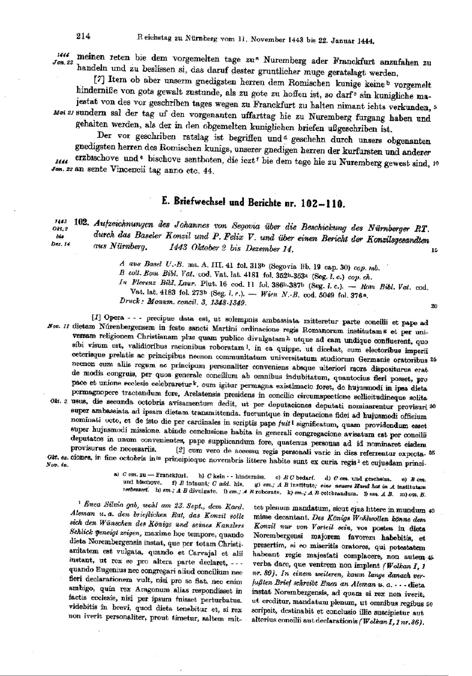 E. Briefwechsel und Berichte nr. 102—110. ^43 100, Aufzeichnungen des