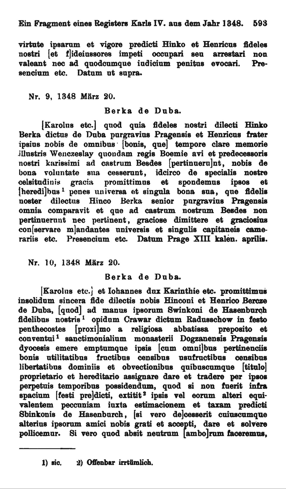 Ein Fragment eines Registers Karls IV. aus dem Jahr 1348 (Gross) NA 43, 1922