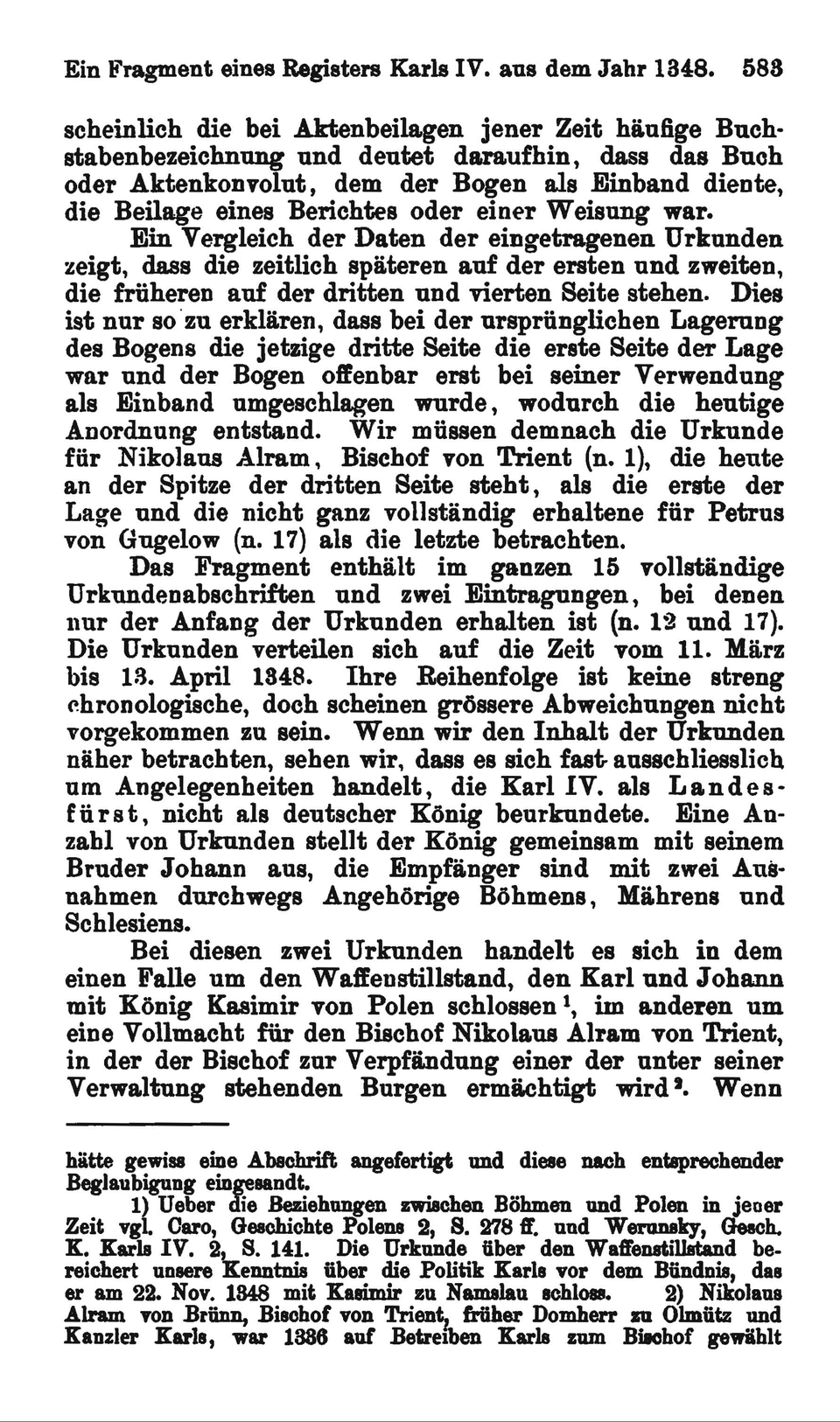 Ein Fragment eines Registers Karls IV. aus dem Jahr 1348 (Gross) NA 43, 1922