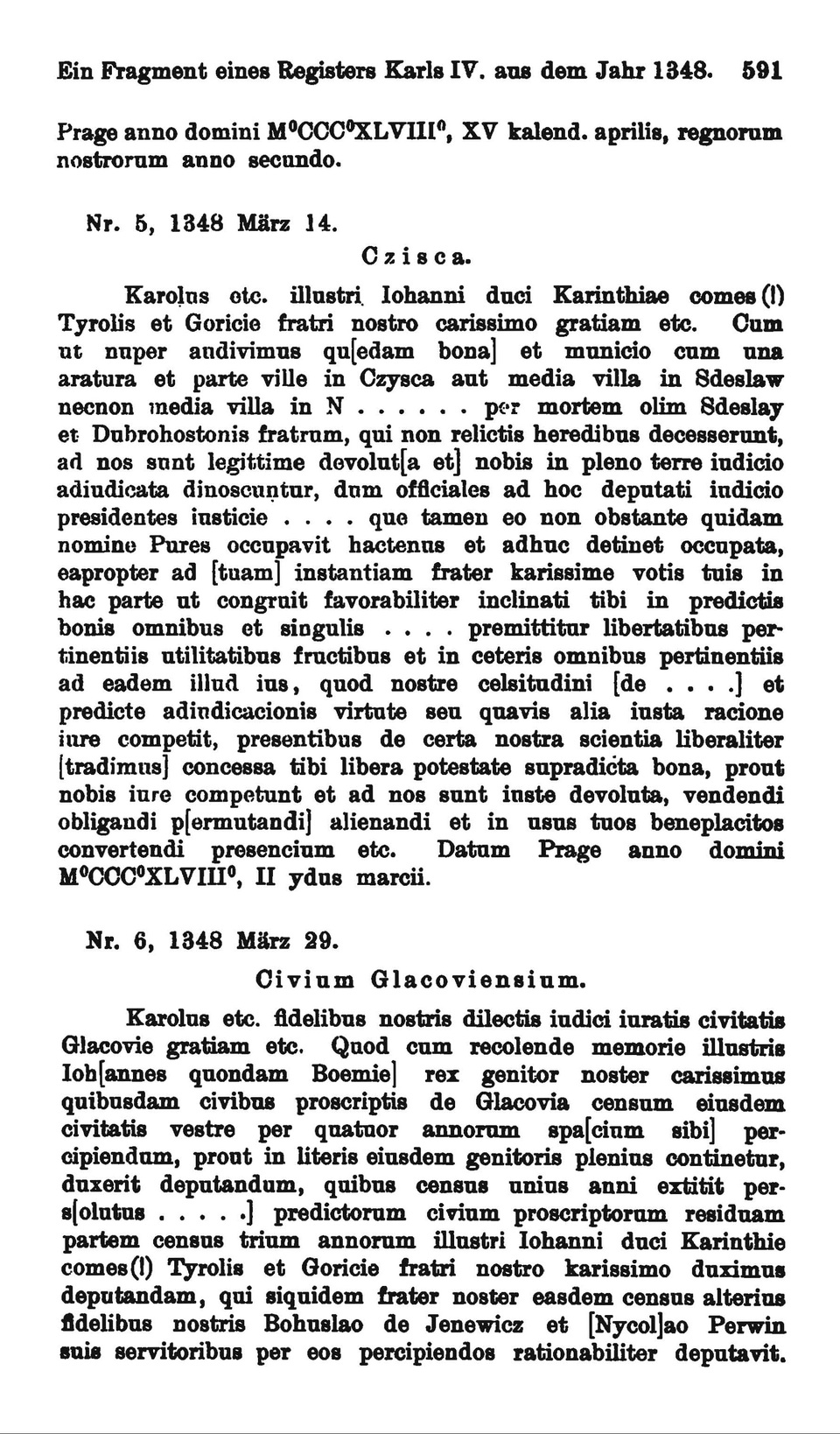 Böhmen ausstellte, keine im Fragment erscheint. Ein Fragment eines Registers