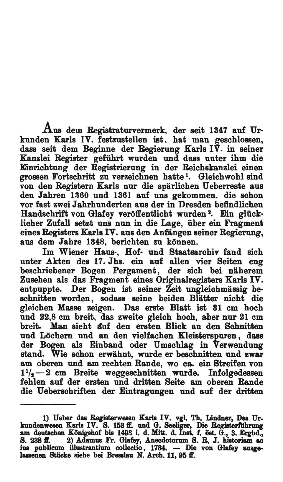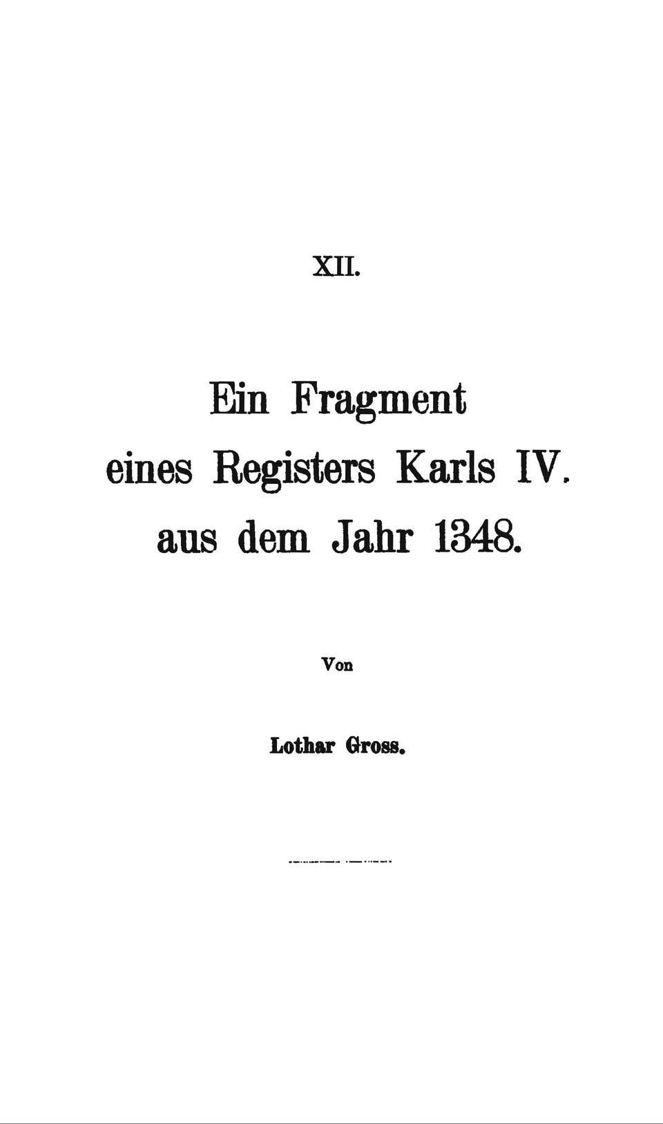 Ein Fragment eines Registers Karls IV. aus dem Jahr 1348 (Gross) NA 43, 1922