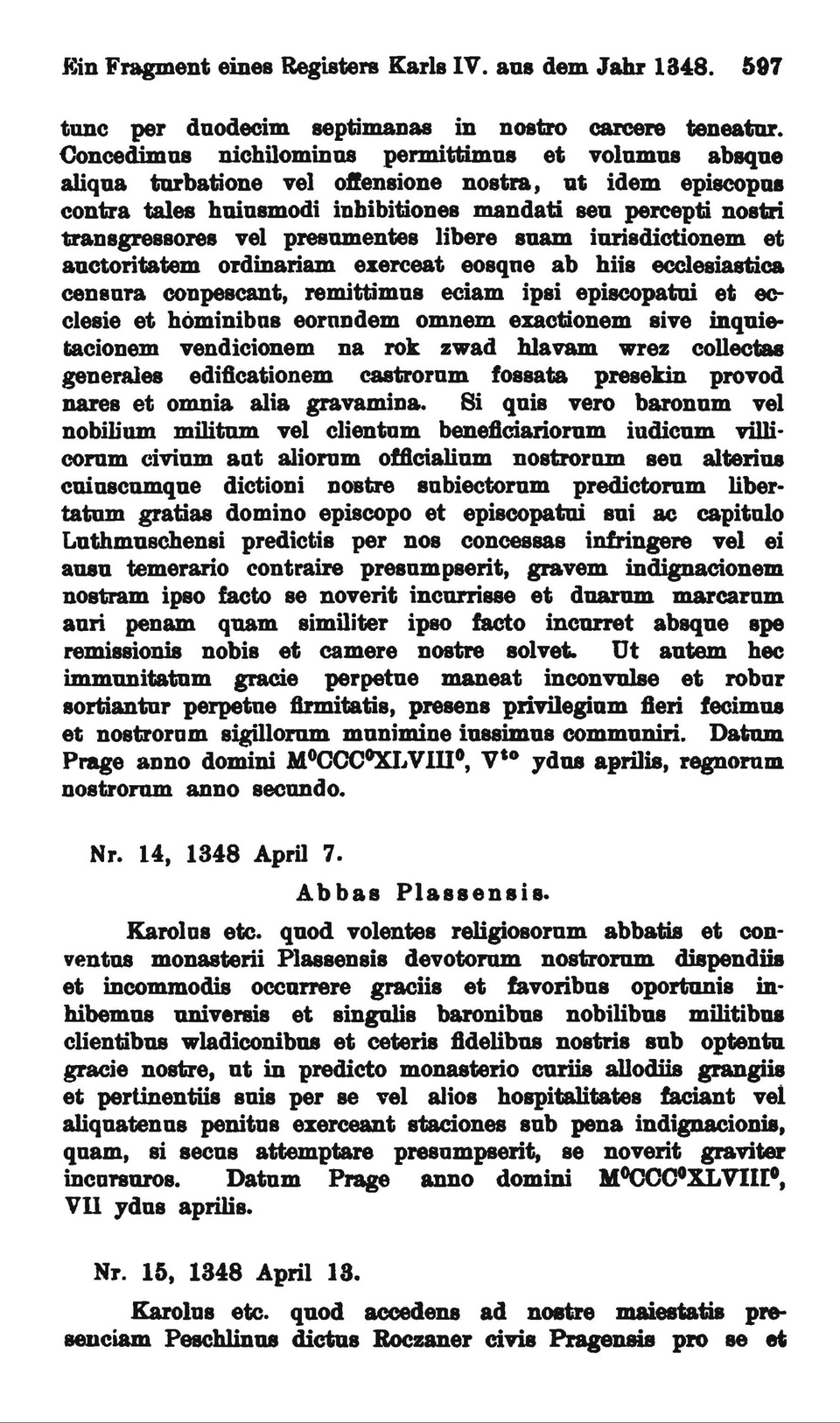 aus dem Jahr 1348. 595 prerogativa specialis dilectionis amplectentes iuribus